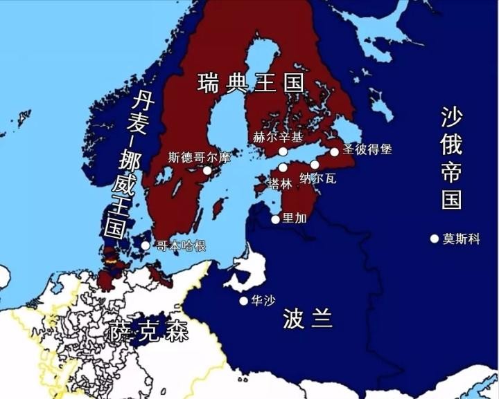 虽说当时俄国也不咋先进(相对西欧等先进国家而言),但人俄国地大人多啊好歹,瑞典是在17-18世纪急剧扩张,疆域变大了好多,但跟北方毛熊——俄国比起来,还是差着不少