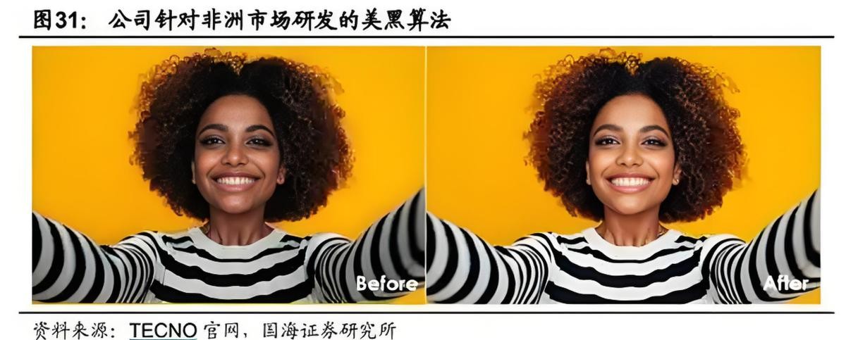 传音为了解决这个问题,特别成立工作小组,200人的研发团队,搜集了近10万张当地人的自拍,研究出一种特殊美颜算法。