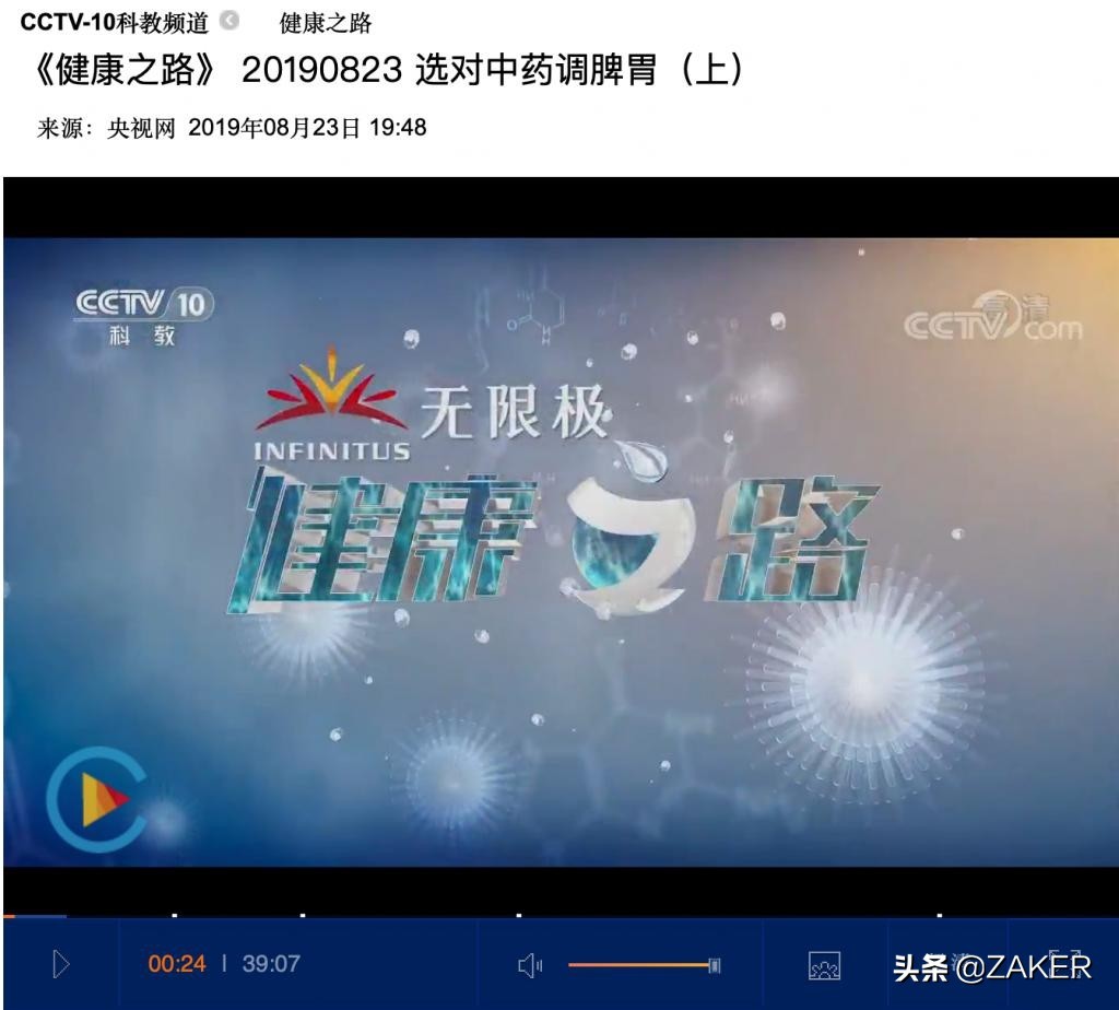 央视下架无限极冠名节目 7 个月后,去年 8 月 23 日起,无限极继续独家冠名《健康之路》,《健康之路》节目的片头开始有了无限极的标志。