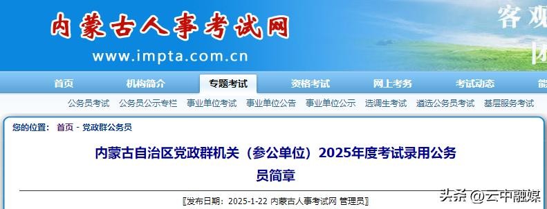 根据公务员法和《公务员录用规定》等法律法规,内蒙古自治区党委组织部决定组织实施全区2025年度考试录用一级主任科员及以下和其他相当职级层次公务员工作。