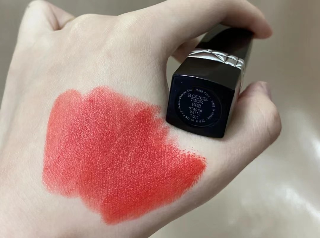 它是继999后又一网红色号,888是暖调橘红色质感,也是一支非常适合春夏季涂抹的口红色号。红调打底的基础上融入了粉色,橘调质感,融合出草莓粉一般明亮,青春气息满满的颜色。