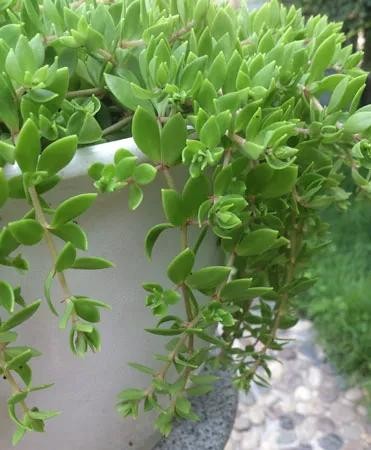 钱串的叶子交叉而生,茎就是叶,叶就是茎,具备非常高的观赏价值,而且可根据环境变化颜色的叶子又为其增添了一份瑰丽。