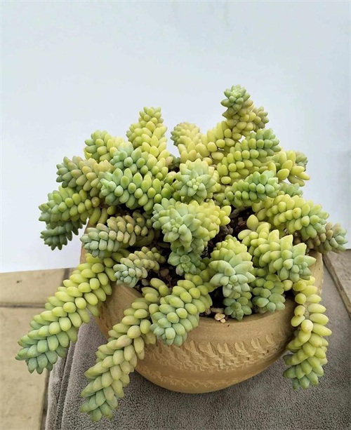 该种多肉叶形叶色较美,花朵玲珑小巧,叶片形似小熊的脚掌,形态奇特,十分可爱,观赏价值很高。