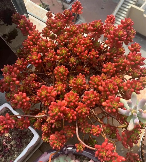 姬胧月是一款很经典的多肉品种,日照充足时叶色为朱红带褐色,叶呈瓜子型,叶末较尖,开黄色小花,星状。