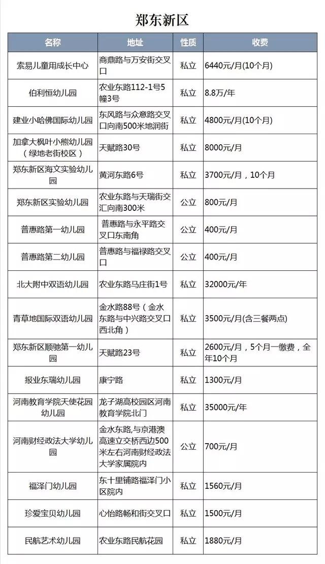 郑东新区海文实验幼儿园:该幼儿园是郑州现存的单体规模最大的幼儿园,属于私立性质。幼儿园一共60个班,每班24人,该幼儿园有统一的校服,校车,收费另算。