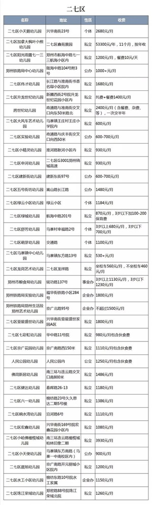 郑州大学工学院幼儿园:属于公立市二级幼儿园,因为是郑州大学自己的幼儿园,所以基本只招收子弟,最近几年也招收部分关系户。