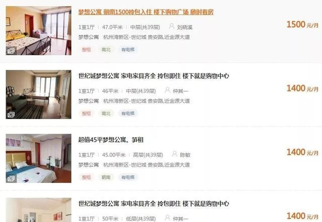 看过了这么多规划概念,我们来看点实际的。租金,在房子转手之前,这个就是我们投资房产最直观的收入了。目前杭州湾的租金情况: