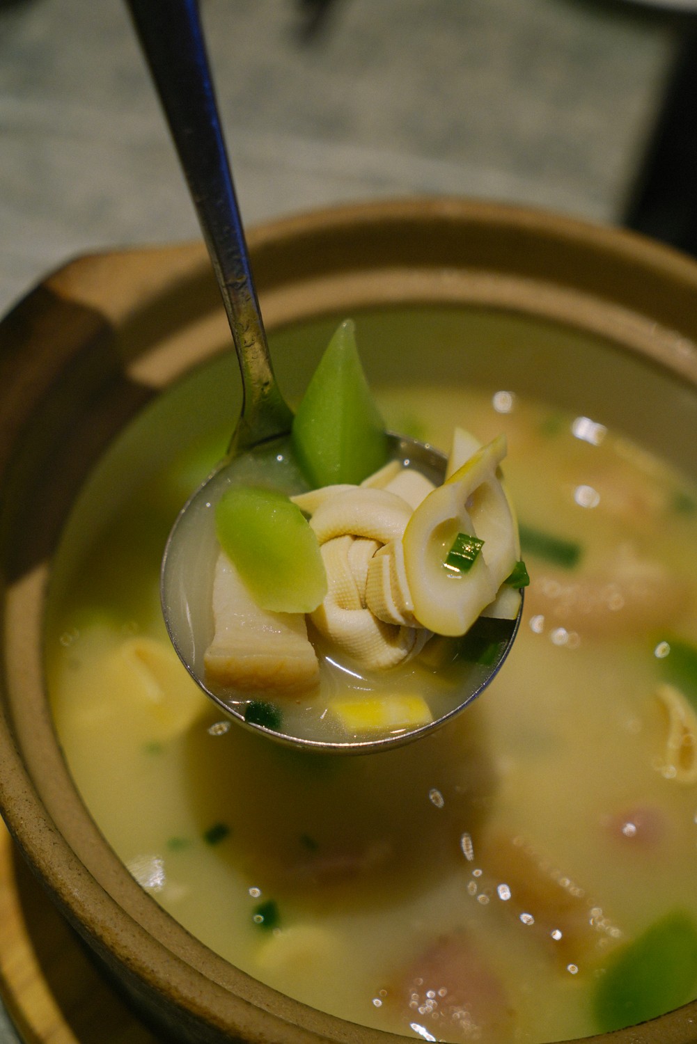 郸韵土陶,砂锅保温,一顿餐前后喝了四五碗汤,口腔里的鲜味贯穿始终。