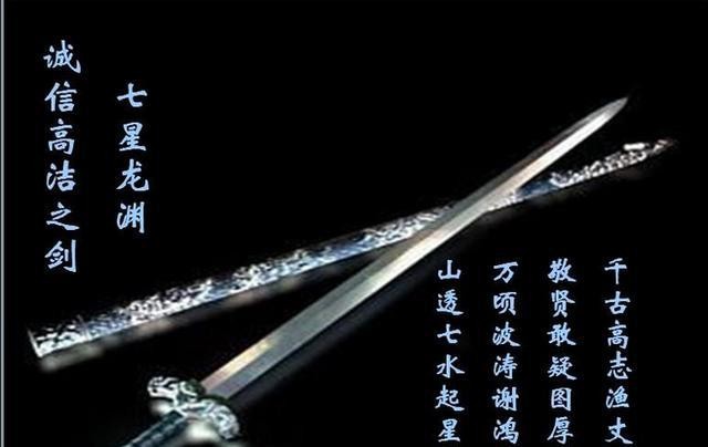 **龙渊剑**,被誉为“诚信高洁之剑”。当人们俯视剑身时,仿佛登上高山,俯瞰万丈深渊,那种空灵深邃的感觉,仿佛有一条巨龙横卧其中,因此得名“七星龙渊”,简称“龙渊剑”。龙渊剑的剑身修长,线条流畅,宛如一条灵动的巨龙。它的刃口锋利无比,能够轻易地斩断任何物体。在历史上,龙渊剑常常被视为正义和诚信的象征,它的主人往往是那些坚守道德底线、秉持正义的人。