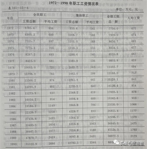 图为1972-1990年职工工资情况表