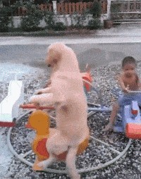 85、现在的狗子真会玩,还会玩旋转木马