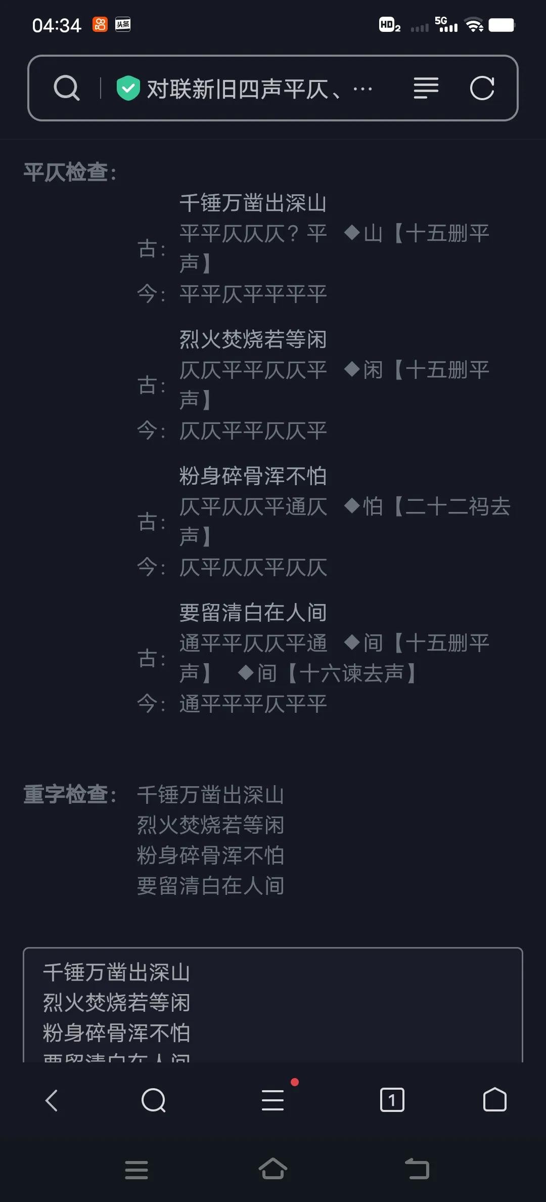 其实,编辑对于格律诗的平仄,就没有掌握了,纯粹二把刀,半瓶醋。于谦老先生这首诗,是特别工整的格律诗。判断平仄,不能按照我们现在标注的拼音来划定,要看平水韵。