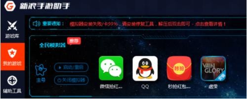 目前微信对安卓模拟器登陆有限制,虽然新浪手游助手已经突破该限制,但依然有可能被微信限制登陆,所以建议各位优先选择QQ抢红包