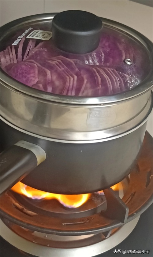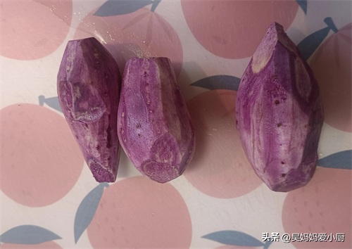 紫薯去皮上锅蒸熟捣泥。紫薯+牛奶+白糖