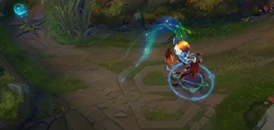 小纳尔的q技能是丢出去一个高科技回旋镖,科技感还是不错的。击中敌人还带有浅绿色的闪电特效。