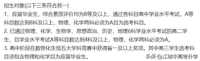 招生对象主要分三类:应届高三毕业生、优秀高二学生、五大学科竞赛获省一奖学生。