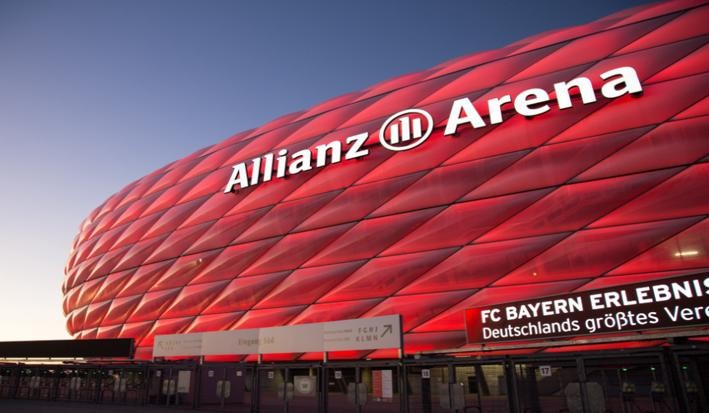 安联球场是拜仁慕尼黑队的主场,可容纳7.5万人,同时也举办过众多重要的国际性赛事。安联竞技场举办了2006年世界杯揭幕战、四场小组赛和一场半决赛,2012年欧冠决赛也在这里举行。安联体育场是欧洲最现代化的球场之一,从远处看,安联球场像巨大的橡皮艇,白色椭圆体之外包裹着许多气囊样的结构,现代感十足。本届欧洲杯将会在这里进行F组的3场小组赛和1场四分之一决赛。