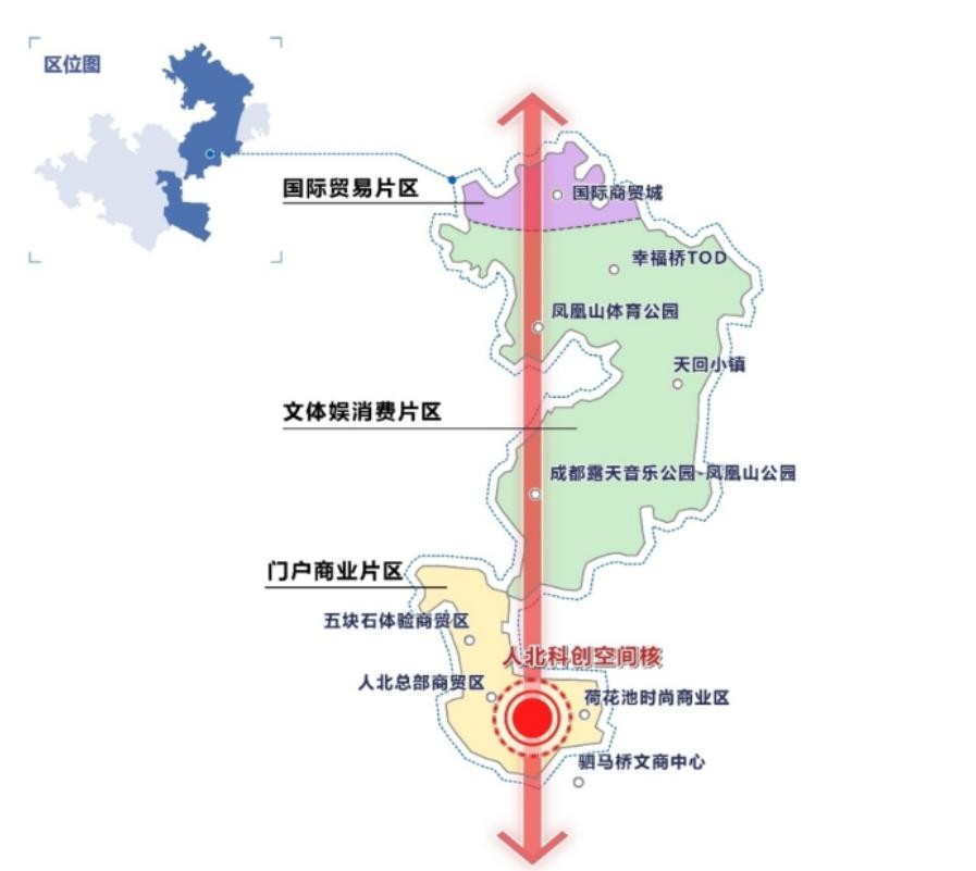 天府大道城市发展功能轴。打造南连天府锦城、北接新都和青白江等区域,高端总部集聚、多元功能复合,带动成德绵创新经济带协同发展的城市经济发展主轴。
