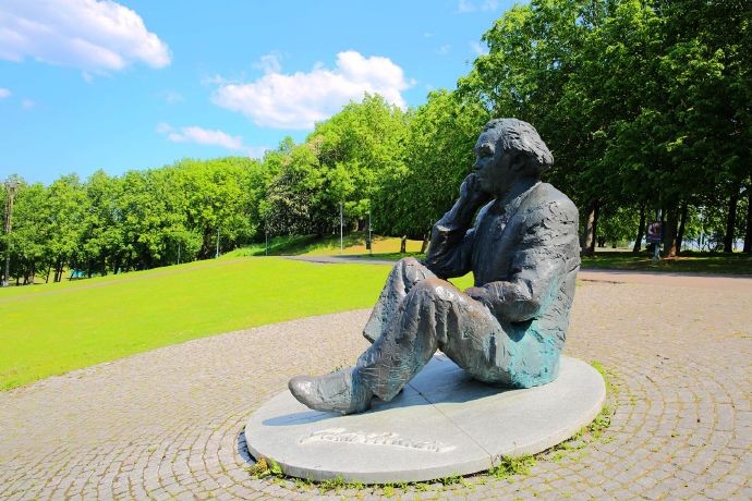 这位坐在高处面对广场的雕塑,据说是爱沙尼亚的一位著名音乐家,他一生写了大量的歌曲,每次音乐会上都演唱他的歌曲,其中一首成为爱沙尼亚独立后的国歌。
