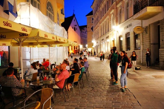 当然,最具浪漫情调的还是塔林的夜晚。当夜幕降临,华灯初上,整个塔林老城区犹如一个巨大的露天酒吧厅,人们三三两两成双成对地坐在一起,谈天说地,寻找快乐,直至夜深。