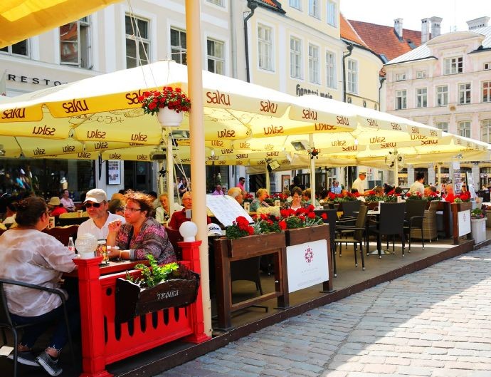 最能集中体现塔林浪漫生活场景的,是市政广场周围那一圈咖啡座,除了早晨门可罗雀之外,其它时间都是客人云集,高朋满座。人们要上一杯红酒或咖啡,坐在这里或聊天或发呆,慢慢地享受休闲时光。