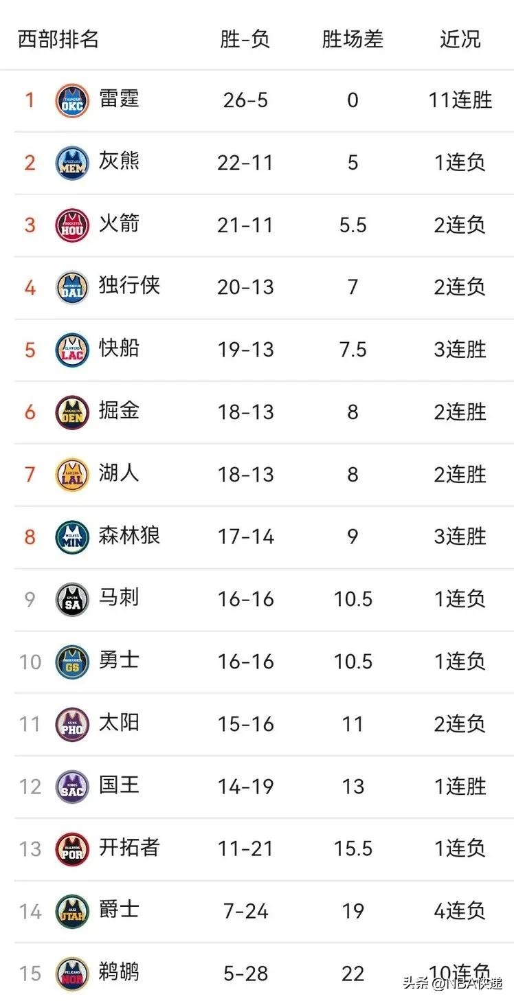 12月31 NBA战报 排名 快船掘金连胜 湖人跌第7 国王胜小牛 勇士输球第10