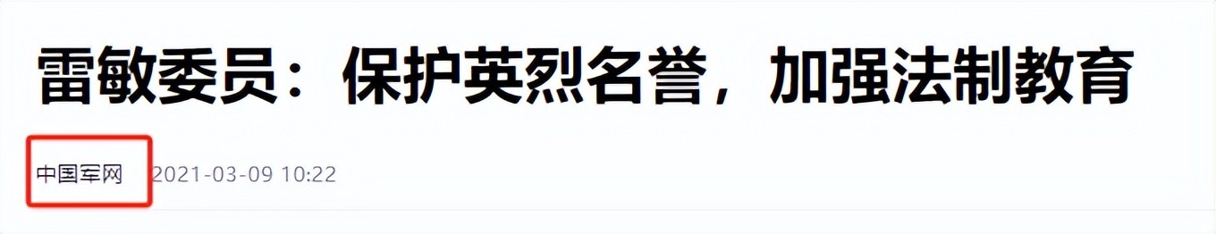 信息来源:中国军网-2021-03-09-雷敏委员:保护英烈名誉,加强法制教育