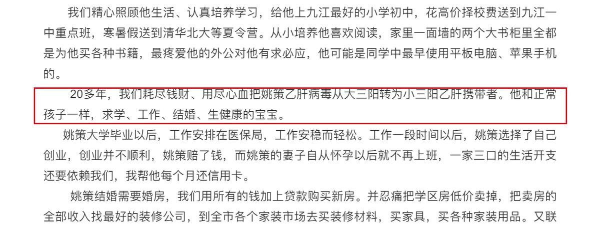 还专门从姚爸老家找亲戚来照顾姚策,为了治好姚策的乙肝,姚爸和许妈的父母到处求医问药,跑遍了北京、上海、江西、河南的医院。