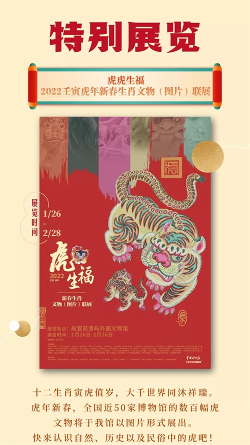 虎年福见,博物馆里过大年,购票买一赠一。还有丰富多彩的展览,虎福历险记、送福筒、送福字、剧本推理游戏等活动,为你送上新春的仪式感。