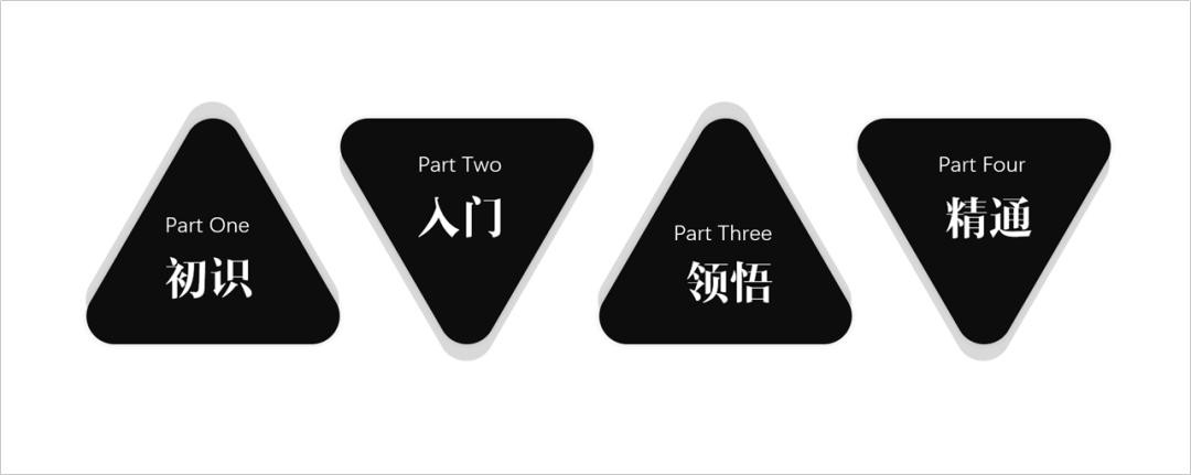 在PPT中,我们也经常会用到三角形的形状,比如下面这几个案例,就是典型的三角形运用。