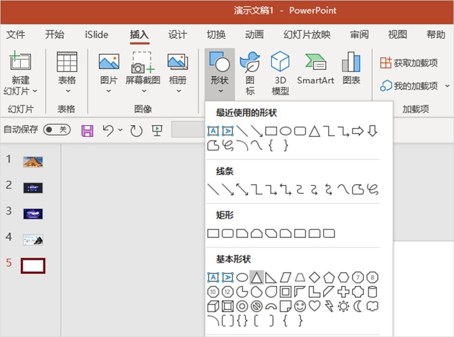 在插入菜单的形状工具里面有,有等腰三角形,也有直角三角形,这些都属于比较常规的三角形。