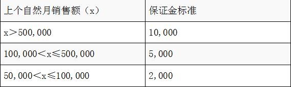 2.2.1平台有权每月根据店铺上个自然月的销售情况,按照下表二所列标准对其店铺保证金进行调整。若店铺账户内的店铺保证金余额高于其上个自然月销售额所对应的店铺保证金标准的,则店铺保证金不予调整。