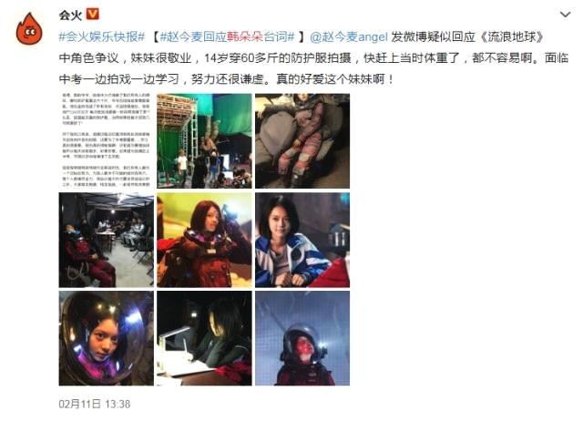 春节档如今最让人称赞的当属于《流浪地球》,无论是票房还是口碑都让人赞不绝口。如今这部电影的大火,导致女主赵今麦在剧中饰演的韩朵朵的台词遭到了大家的质疑,这也在网上传的沸沸扬扬,不过赵今麦也是在微博发声,疑似回应韩朵朵的台词风波。