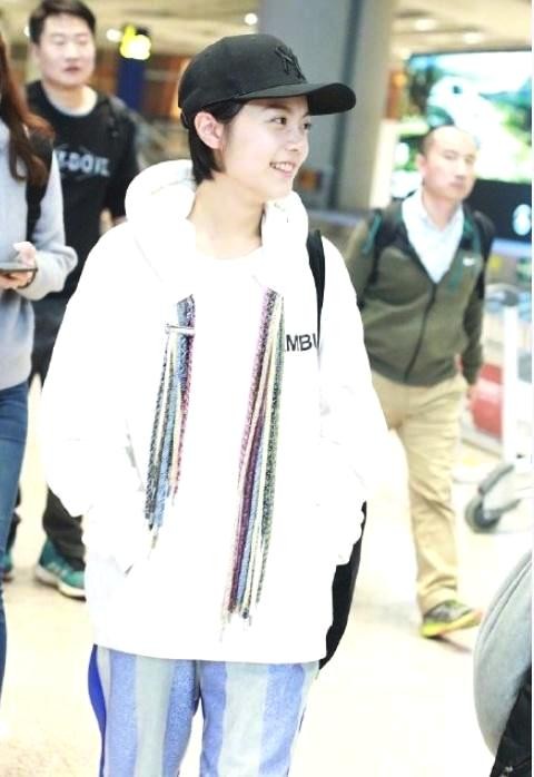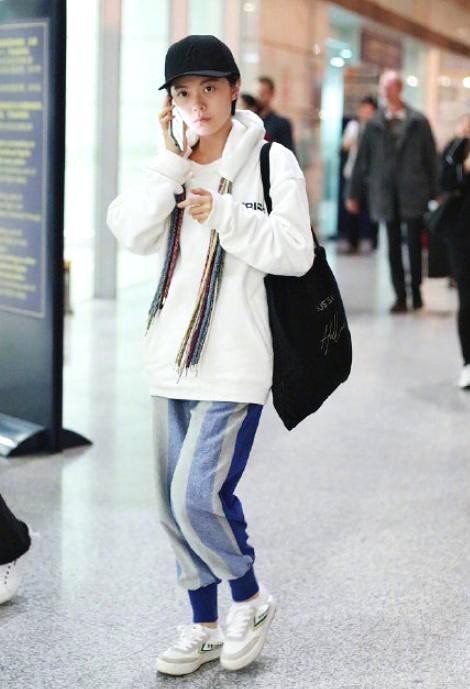 赵今麦发声后首现身,白色卫衣配彩色帽绳