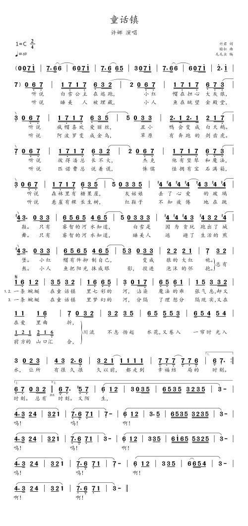 《童话镇》是由竹君作词,暗杠作曲并演唱的歌曲。 收录于2016年发行的专辑《童话镇》中。2016年5月24日在网易云音乐独家首发上线。歌曲首发次日全线进入云音乐原创榜、飙升榜、新歌榜等榜单。歌曲广受好评。入选2016年度云音乐原创榜歌曲第十一名。2016年9月28日,由暗杠担当制作人,邀请陈一发儿作为歌曲女声版原唱,编曲重新调整后的《童话镇》女声版本于网易云音乐独家首发上线,迅速获得广大听众的认可。 2017年5月24日,暗杠和他的“一人乐队”走入校园演唱《童话镇》。2017年8月22日《走歌人17》全国巡演启动。