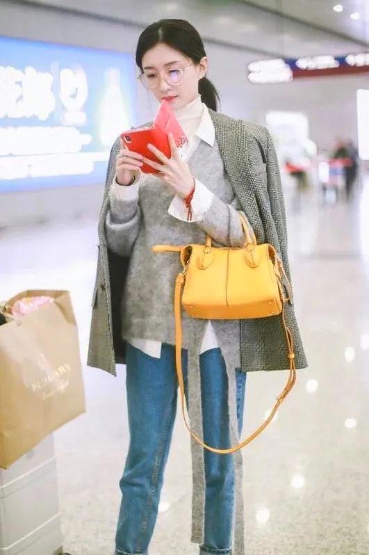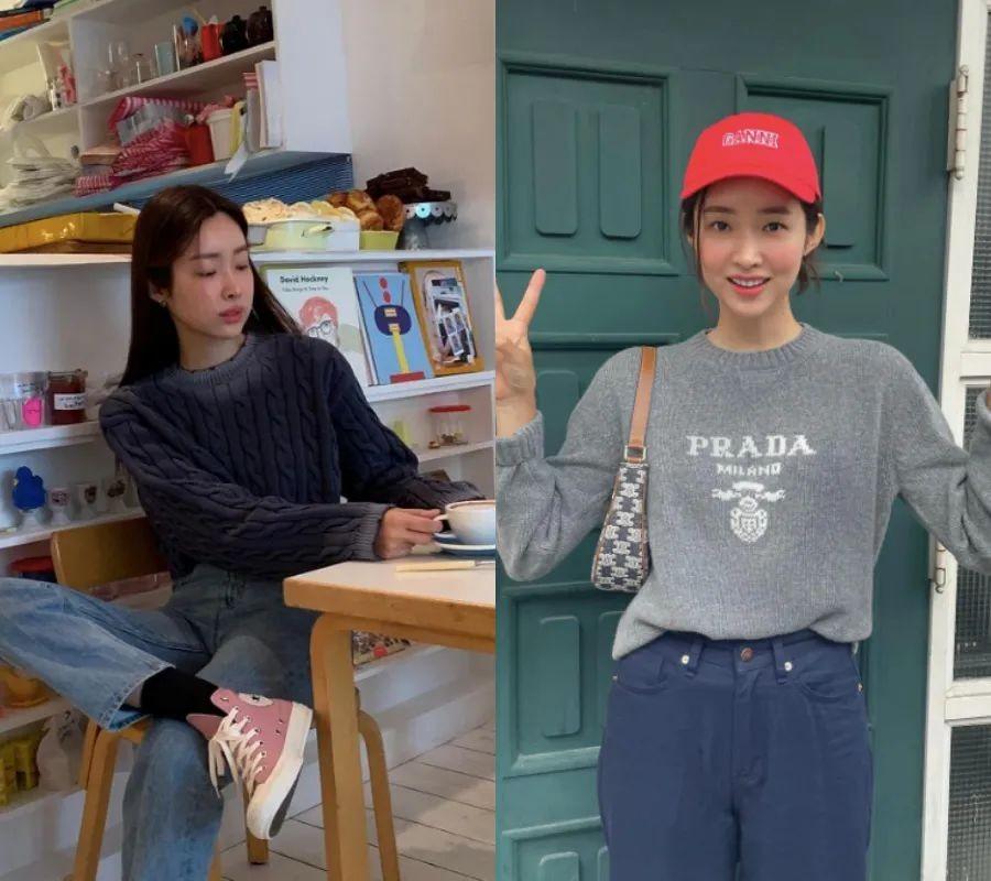 比如这位大美人就很喜欢用灰毛衣配蓝色牛仔裤,舒服耐看还能百搭。