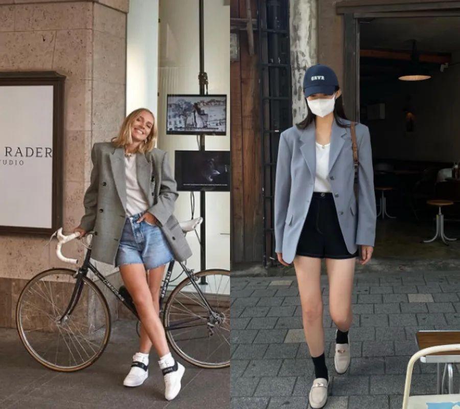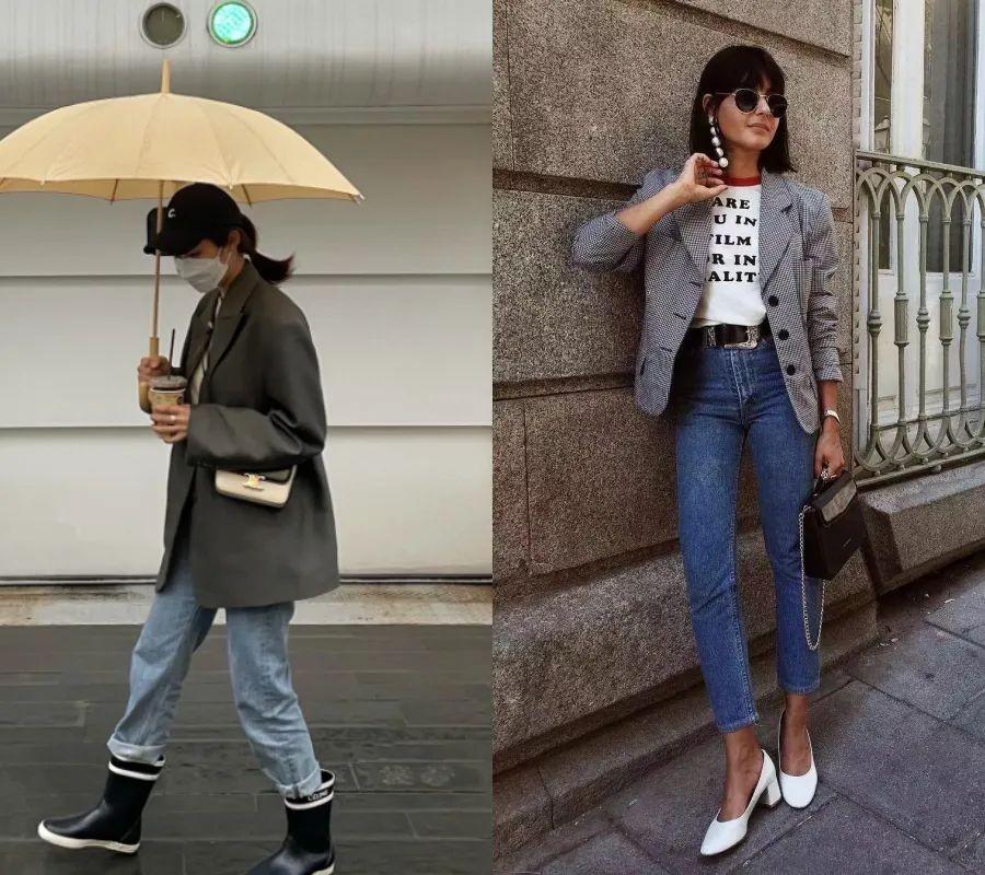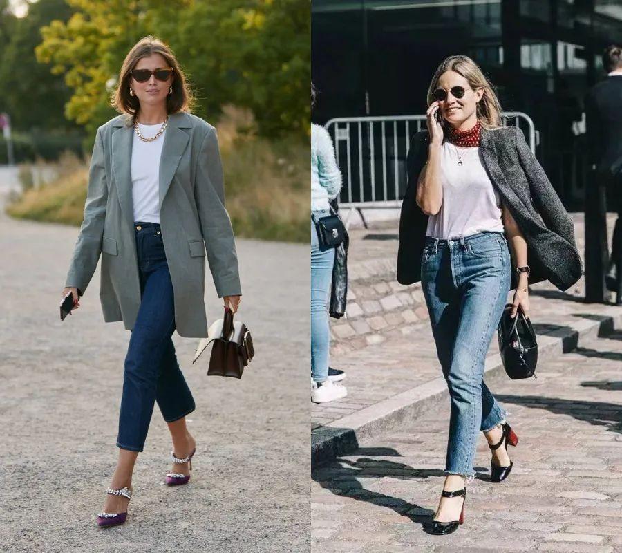 也有很多人是这样的搭配,在街拍里也有不少会出现,下面穿个高跟鞋就会让你气场满分。