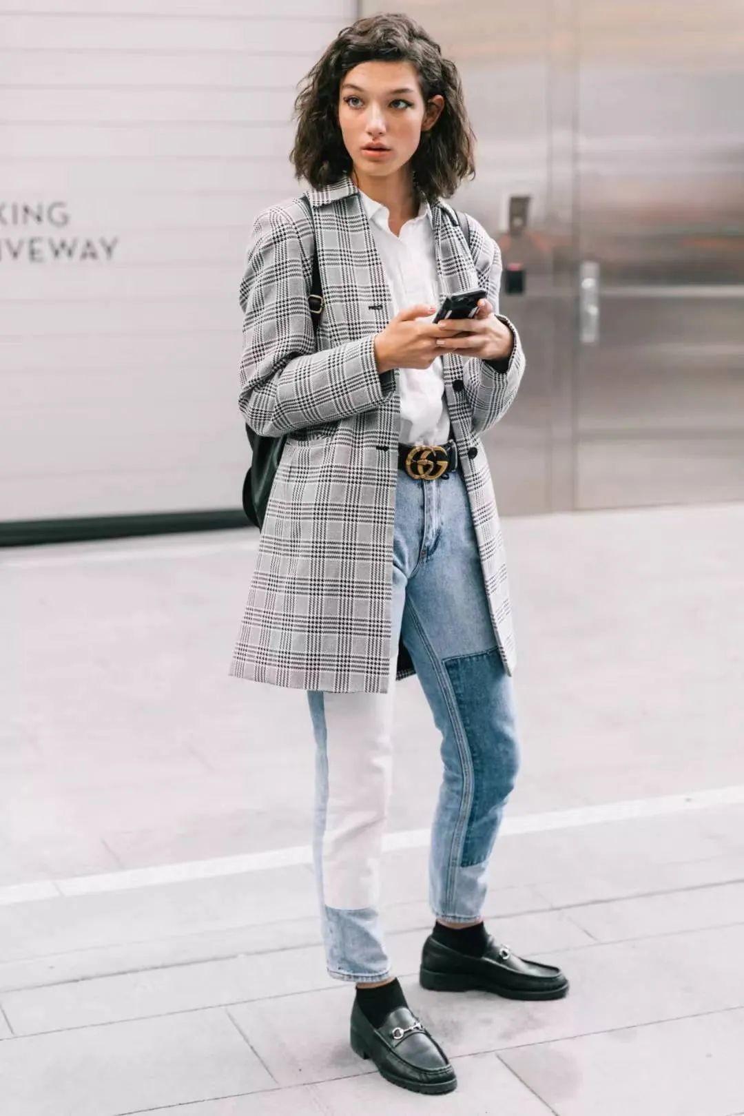 而除了最普通的灰色西装以外,还可以试一试这两年都非常流行的格纹,无论是大格子还是小格子都不要错过,会更增加一点精致感。
