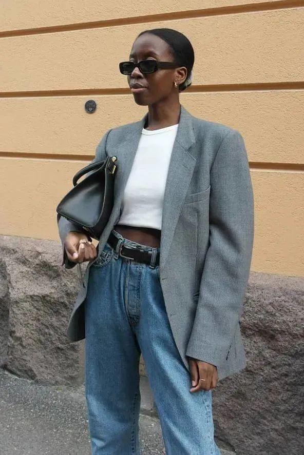 现在大部分地区的天气比较暖和,所以当下最适合的套路就是灰西装和白T牛仔裤,无论是打造比较街头的感觉还是职场风,都可以这样穿。