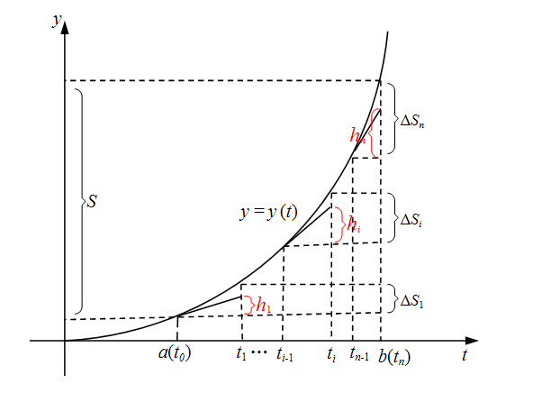 数学上把这种由直线x=a,x=b(a≠b),y=0和曲线y=f(x)所围成的图形称为曲边梯形。如何计算这种图形的面积呢?曲线图形面积的计算有个核心思想,就是“以直代曲”。具体来说就是当一段曲线上的两点充分接近时,此时这两点间的曲线可以近似看成直线。利用这种思想可以将曲线图形用许多细小的平直图形密铺逼近,然后再将面积求和,从而求得曲线图形的面积。最早采用这种思想的是古希腊的数学家阿基米德,他的方法称为“穷竭法”,阿基米德使用这种方法计算了抛物线弓形的面积。“穷竭法”是积分思想的萌芽。