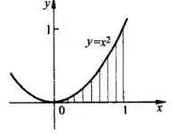 定积分采取了和穷竭法相似的手段,而高明之处就是定积分在穷竭法的基础上加入了系统的极限思想。总的路线都是将曲线图形用平直图形密铺逼近,然后将面积求和。这里举一个定积分的实际例子:求由抛物线f(x)=x²与直线x=1,y=0所围成的平面图形的面积S。
