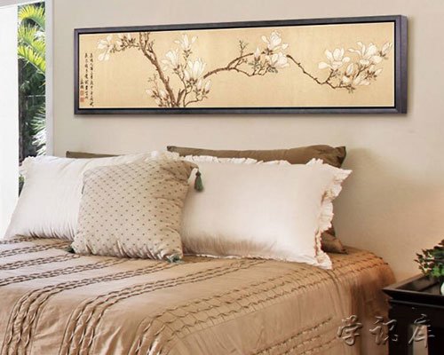 在床头挂植物的图画,能让人心旷神怡,心胸开阔。在风水中,也有旺财的作用。挂上植物图片,可以让人耳清目明,可以更加冷静思考和规划自己的计划,同时还能创造静谧的卧室环境。在这样的氛围中出来的人,头脑更加理智清晰,会获得更好的发展机遇。因此,在床两侧挂植物图片也是不错的选择。