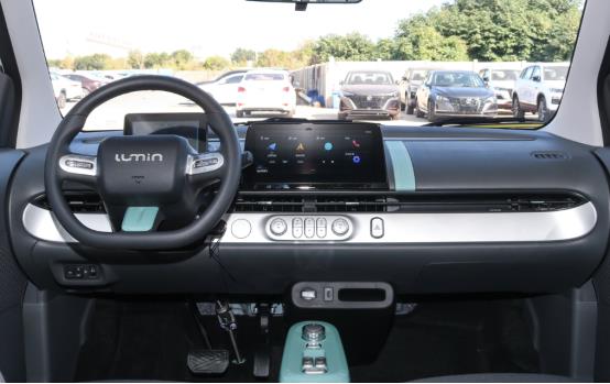 相比于外观,我觉得长安Lumin更加好一些,仪表屏幕+中控大屏的组合设计,实用和美感都不错,前排设计的比较厚重,但是车内配色比较明亮,所以有点反差萌的感觉,中控下面的实体按键旋钮设计也是加分项目。