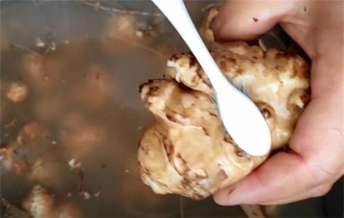 3.然后再用刀将这种嫩芽给削掉,嫩芽不好保存,而且也会影响口感,吃起来软软的不脆。