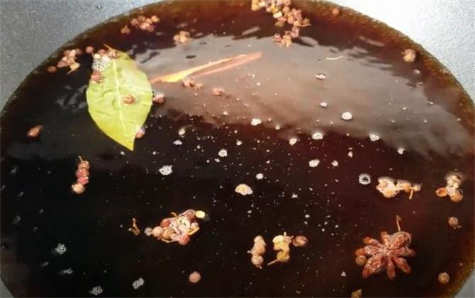 5.锅里放入120g食盐,加入1500g清水,加入八角、香叶、桂皮、花椒、加入50g的冰糖,加入100g生抽,10g的老抽,大火烧开,水开之后关火晾凉。