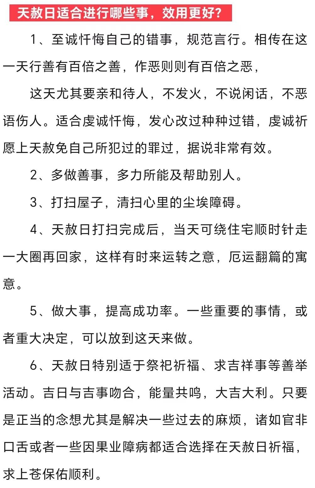 天赦日利消灾化煞,祈福求寿是一年中非常值得珍惜、为数不多的好日子。