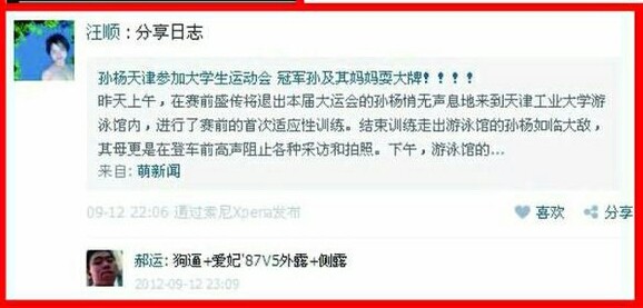 这就是他们以为无人会知的人人网上背后诋毁“出头鸟”孙杨的截图。