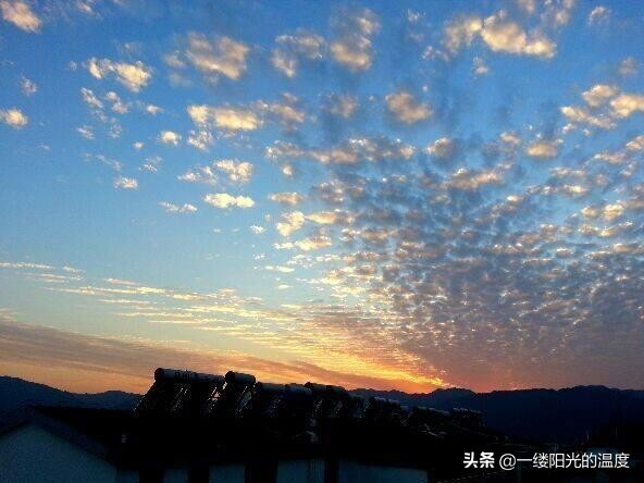 “鱼鳞云”在气象学上叫“透光高积云”,是秋冬季强冷空气来时出现的一种天气现象。民间有“天现鱼鳞云,不雨风也颠”,预示近期天气会不稳定的说法。