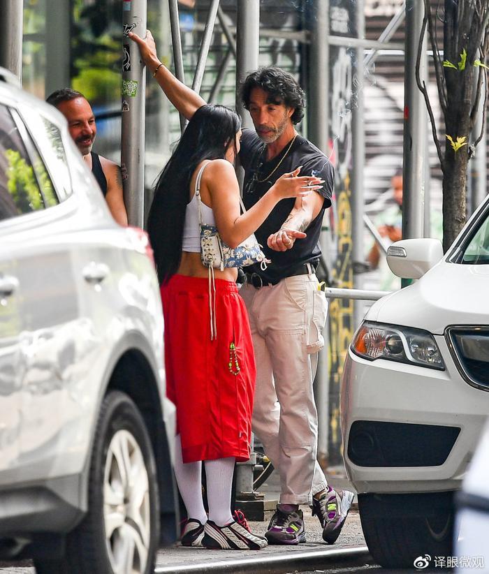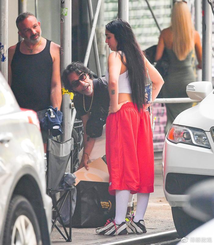 这对父女在纽约街区走走停停,途中还一起拍照留念,卡洛斯用手臂搂住了女儿的肩膀,卢尔德则开心地比耶,腋毛抢镜。显然,两人都很享受这段难得的购物之旅。