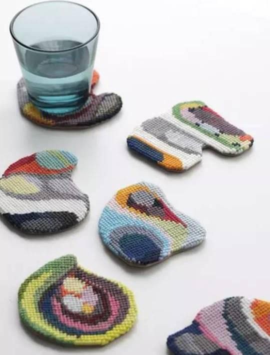 ▼ 十字绣创意横绣技巧教案杯垫规律